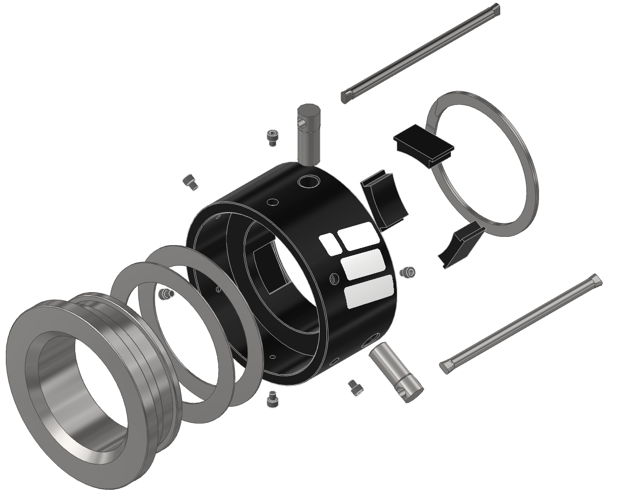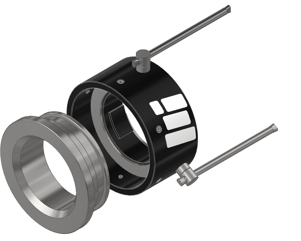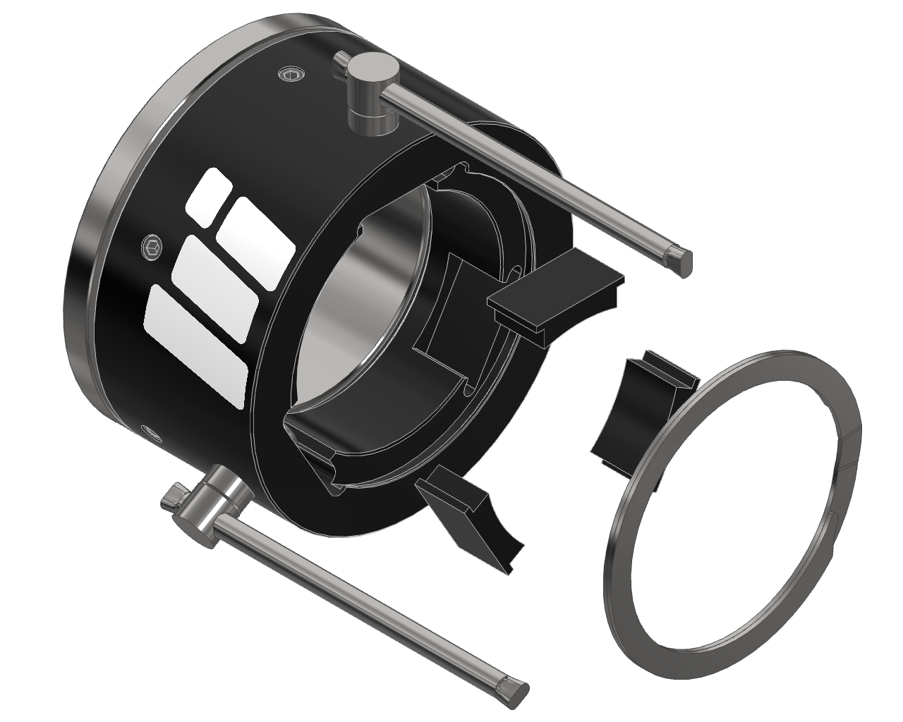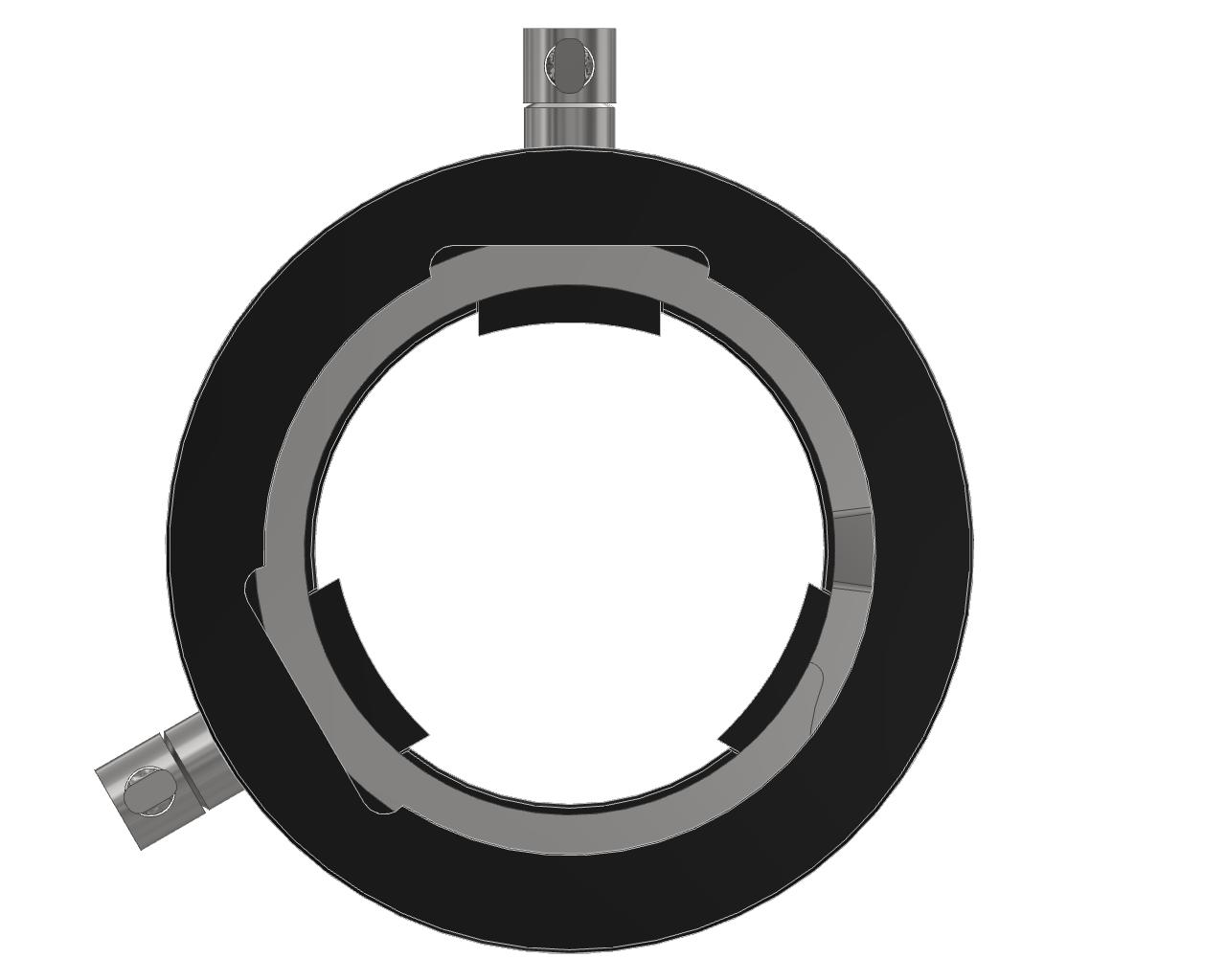 The clamp piston, which makes contact with the weight plates, is free to rotate. This additional degree of freedom prevents any rotational forces from the plates to be transferred to the Mack Clamps.